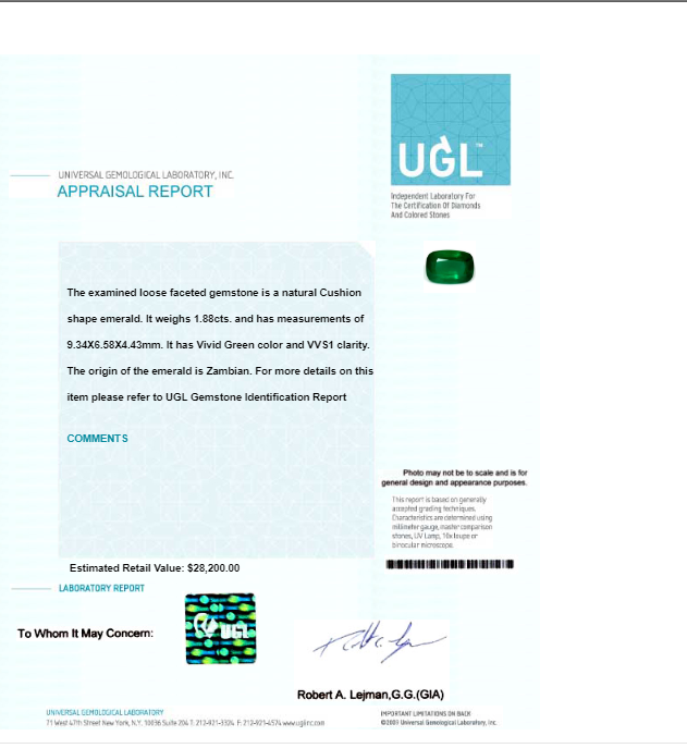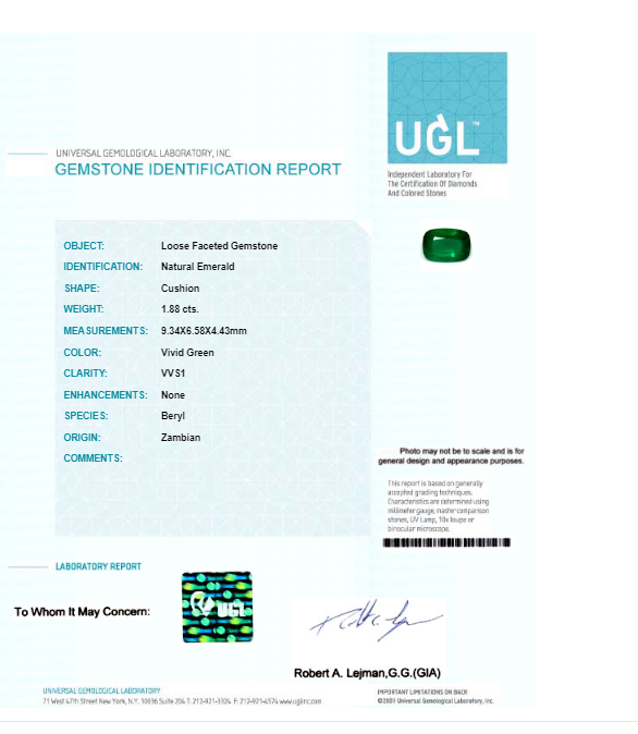 Copy of Emerald Cushion GIA Certified Untreated 1.87 cts.