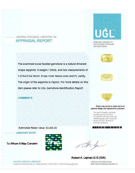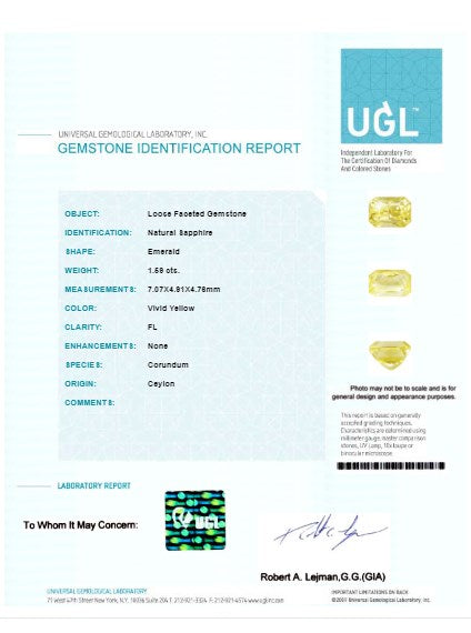 Emerald Cut Yellow Sapphire Untreated 1.58 cts.