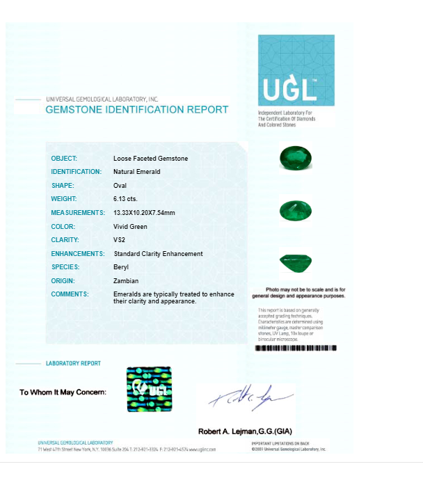 Copy of Emerald Oval GIA Certified 6.12 cts