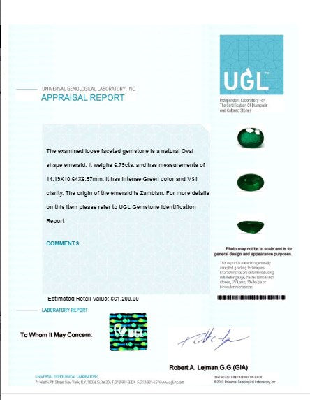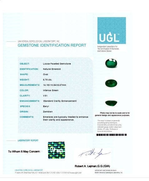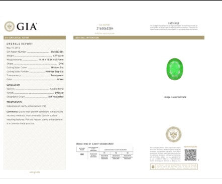 Green Emerald Oval GIA Certified 6.78 cts.