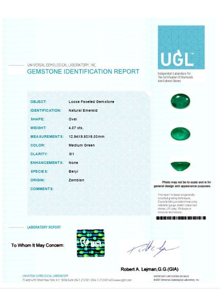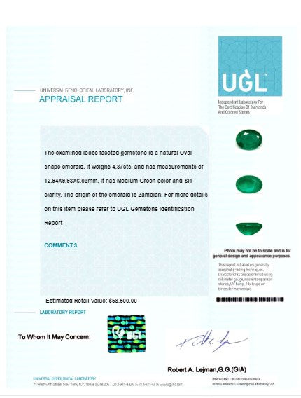 Green Emerald Oval GIA Certified Untreated 4.87 cts.