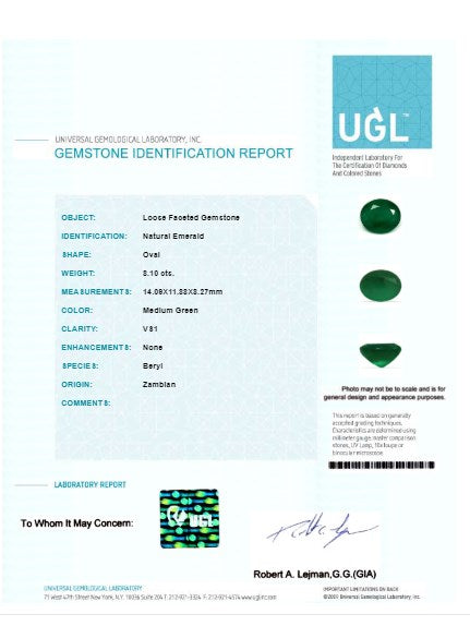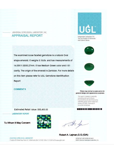 Green Emerald Oval GIA Certified Untreated 8.10 cts.