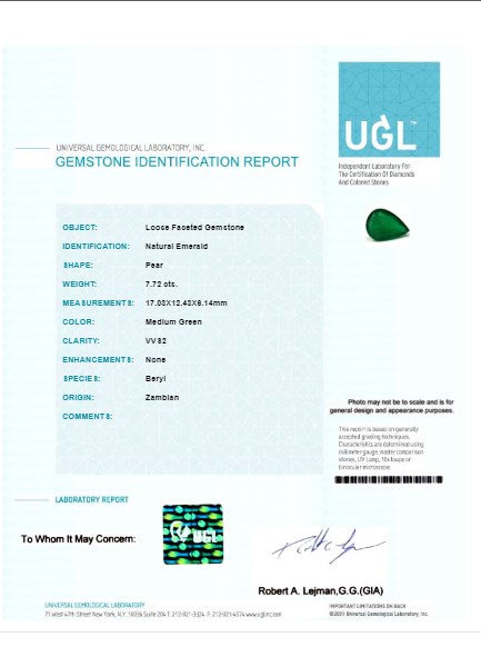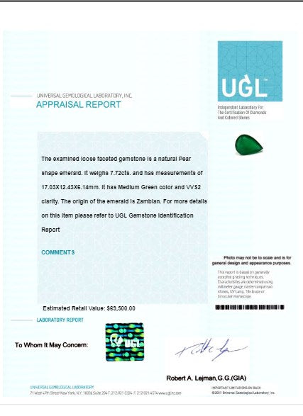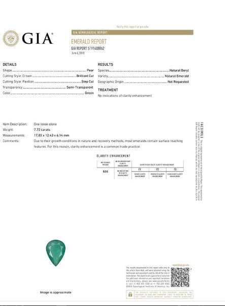 Green Emerald Pear GIA Certified Untreated 7.71 cts.