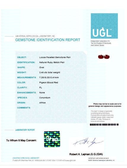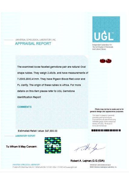 Ruby Oval Matched Pair GIA Certified Untreated 2.44 cttw.